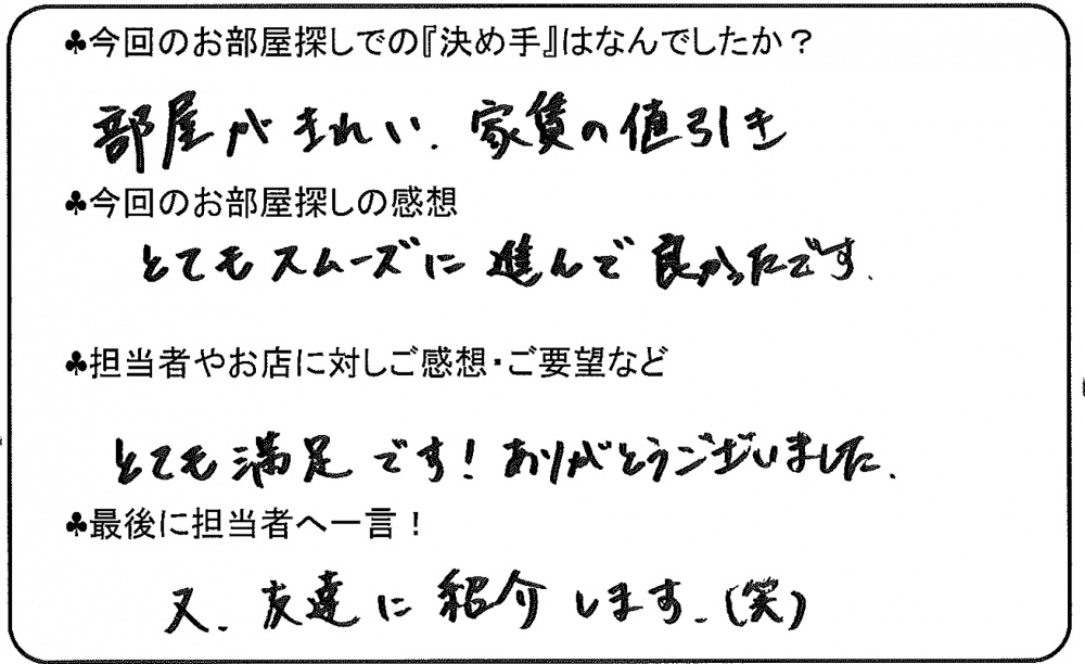 相模原の賃貸はクローバーホーム > お客様の声一覧 > 相模原市南区でご契約のK・Yさん