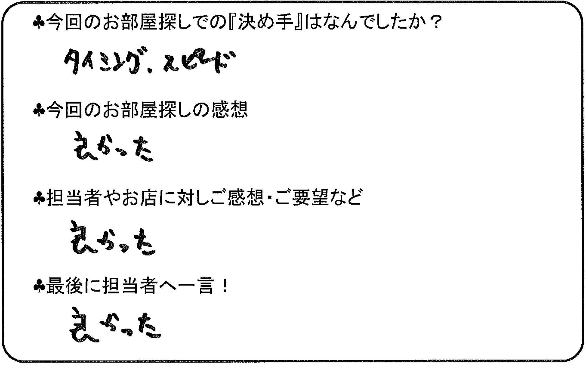 相模原の賃貸はクローバーホーム > お客様の声一覧 > 海老名市でご契約のT・Hさん